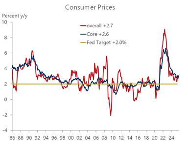 That said, inflation pressures should continue to ease in 2026, as its main drivers are fading. Goods prices linked to imports will likely get a bump early next year, as the final leg of the 2025 tariffs are passed through to consumers. But the key driver of service prices, labor costs, is expected to wane as job growth continues to slow. That trend is firmly underway. Overall, the November jobs report was a mixed bag. Total payrolls slumped badly, thanks to a huge drop in Federal employment as government workers who took deferred resignations earlier in the year finally fell off of the payroll ledger. But the private sector took on a decent number of workers, expanding payrolls by 65 thousand in November and an average of 75 thousand over the past three months. That’s actually a step up from the previous three months, which saw an average gain of only 13 thousand a month.