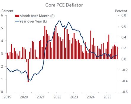 With households still spending at a sturdy pace, companies are still able to push through higher prices, covering a good portion of the tariffs. The core personal consumption deflator, the Fed’s preferred inflation gauge, increased by another 0,2 percent last month, leaving it at 2.9 percent above its year-earlier level. The good news is that the annual change held steady with the previous month. The bad news is that it held steady with the previous month, keeping sticky inflation intact. Over the past 3-,6- and 12-month periods, the annualized increase in the core PCE deflator has hovered within 0.1 percent of 2.9 percent. With tariffs still coming and consumers still spending, we expect inflation to pierce the 3 percent threshold well before it starts receding to the Fed’s 2 percent target.