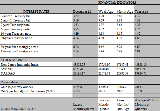 But it’s doubtful that the loss of momentum carried over into the fourth quarter. Most industry reports and anecdotal evidence suggest that the holiday shopping season got off to a robust start, with seasonal purchases shaping up to be the strongest since 2021. As we are about to see for the third quarter, a strong start to the period matters, as it imparts heft to the average reading for the quarter. Still, the purchasing strength is conflicting with the bad vibes from consumers, as household sentiment remains in the dumps. The University of Michigan’s sentiment index, released Friday, did edge up in early December, but that may be more of a bounce related to the end of the shutdown, brightening expectations a tad, than any sense of improving conditions