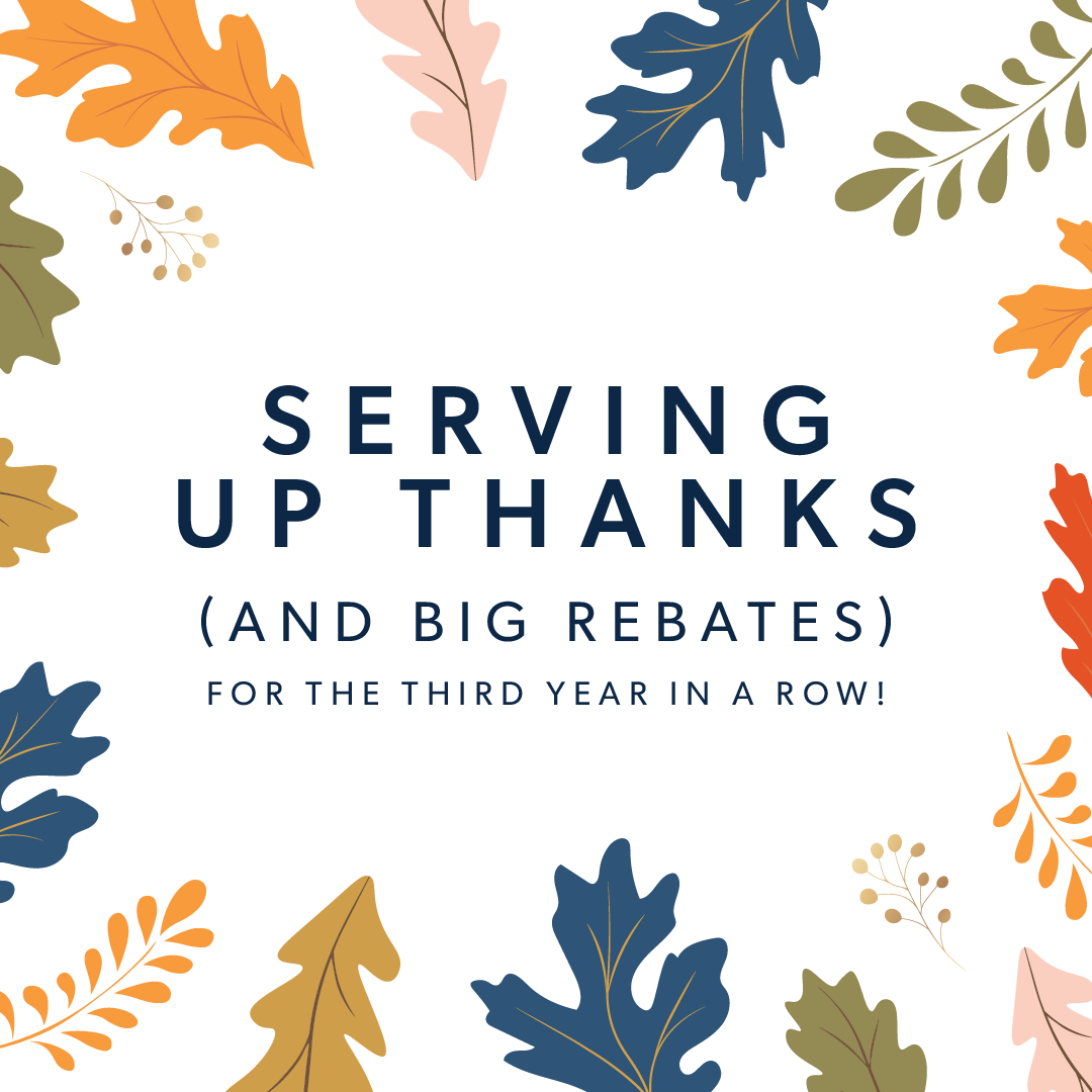 To show our appreciation, we’re bringing back our Thanksgiving rebate gift for the third consecutive year! Members who use two or more of our payment services will receive a special rebate on billing from January through June 2025.